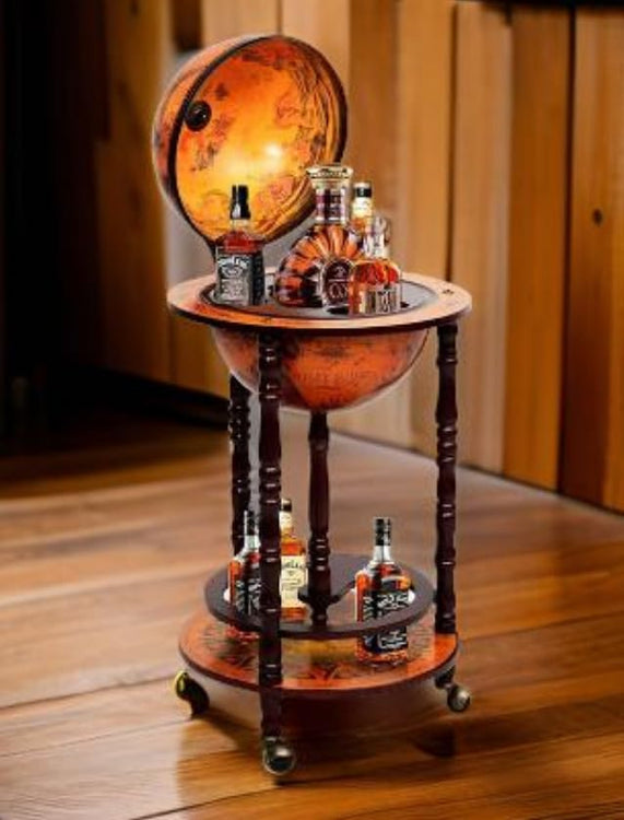 I got the HAPPYGRILL Globe Bar, and it’s the coolest thing in my living room now! The globe design looks so fancy and retro, like something out of an old movie. It’s the perfect size at 17.5 inches, and the 16th century style really adds old fashioned style to the room. The inside globe part holds a few bottles of wine and glasses easily, and the wheels make it easy to move around. It’s sturdy and the retro brown wood finish looks classy. It fits great in my dining room but would work in a living room or office too. Putting it together wasn’t hard at all. If you want something unique and stylish to store your drinks, this globe bar is amazingggg.